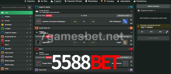 O 5588bet oferece uma grande seleção de opções de apostas em e-sports com probabilidades competitivas